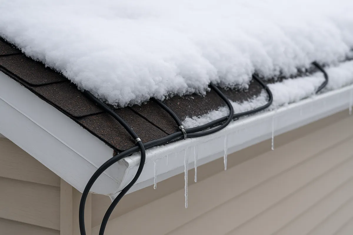 Heat cable installation is a proactive solution that helps prevent ice dams from forming. The cables are installed in a zig-zag pattern along the roof edge and inside gutters, creating a heated channel that helps meltwater flow off the roof even in the coldest winter days.