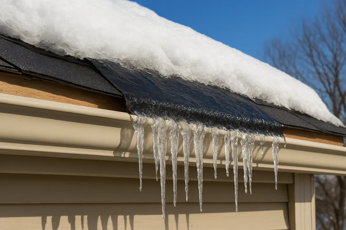 Meltwater refreezes at the eaves → forming an ice ridge